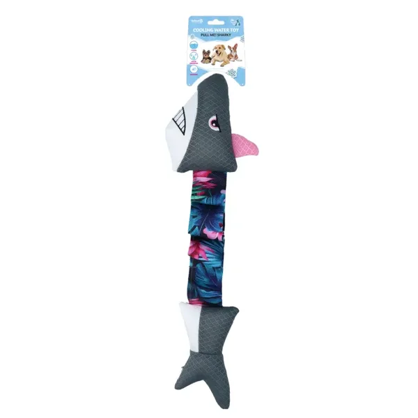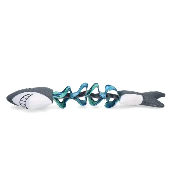 Deze stoere haai is het ideale speeltje in de zomer! Niet alleen blijft de haai drijven – wat natuurlijk leuk is tijdens het zwemmen – ook loopt het speeltje vol met water. Dit water loopt uit het speeltje zodra de hond het in de bek neemt en op deze manier wordt uitdroging tegen gegaan. Ook kun je leuke trekspelletjes met je hond en de haai doen, dankzij de elastische veer en de robuuste pieper die in de haai zit. Het flosstouw van de Pull Me! Crocky Rope helpt bovendien bij het reinigen van het gebit van de hond.