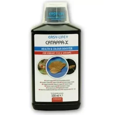 EasyLife Catappa-X is een vloeibaar product voor aquaria, gemaakt van extracten van de Catappa (Indian Almond) bladeren. Het wordt gebruikt voor verschillende doeleinden in het aquarium: