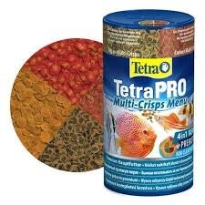 Tetra Pro Multi-Crisps Menu Visvoer is een soort visvoer geproduceerd door het merk Tetra. Het is ontworpen als een hoogwaardig, Multi-textuurvoer voor aquariumvissen, met name voor vissen die van een gevarieerd dieet houden. Het "Multi-Crisps"-gedeelte verwijst naar de verschillende soorten voedseltexturen en -vormen in het product. Het bestaat uit knapperige vlokken of chips die zijn samengesteld om te voldoen aan de voedingsbehoeften van vissen, en die een uitgebalanceerd dieet bieden met essentiële vitaminen en mineralen. "Menu" in de naam suggereert dat het een variatiepakket is of verschillende soorten voedselopties bevat binnen het product, gericht op het bieden van een uitgebalanceerd dieet aan vissen in één product.