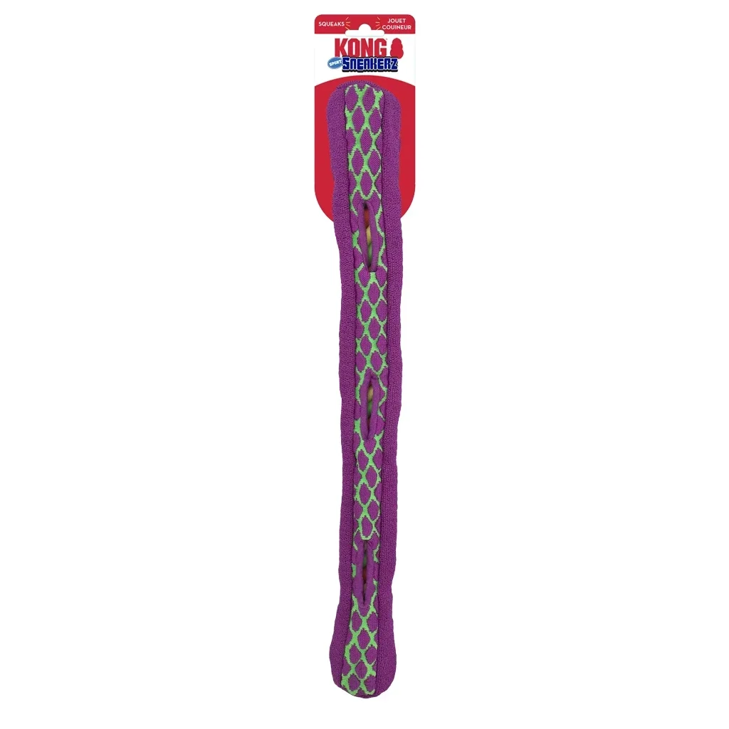 Het gripvaste speeltje beschikt over kiekeboe-vensters die de foerageerinstincten prikkelen, terwijl het interne gedraaide touw kauwbehoeften beloont. De stokvorm van 51 cm is ideaal voor interactieve trekpartijen en de meerdere piepers verlengen zeker het speelplezier.