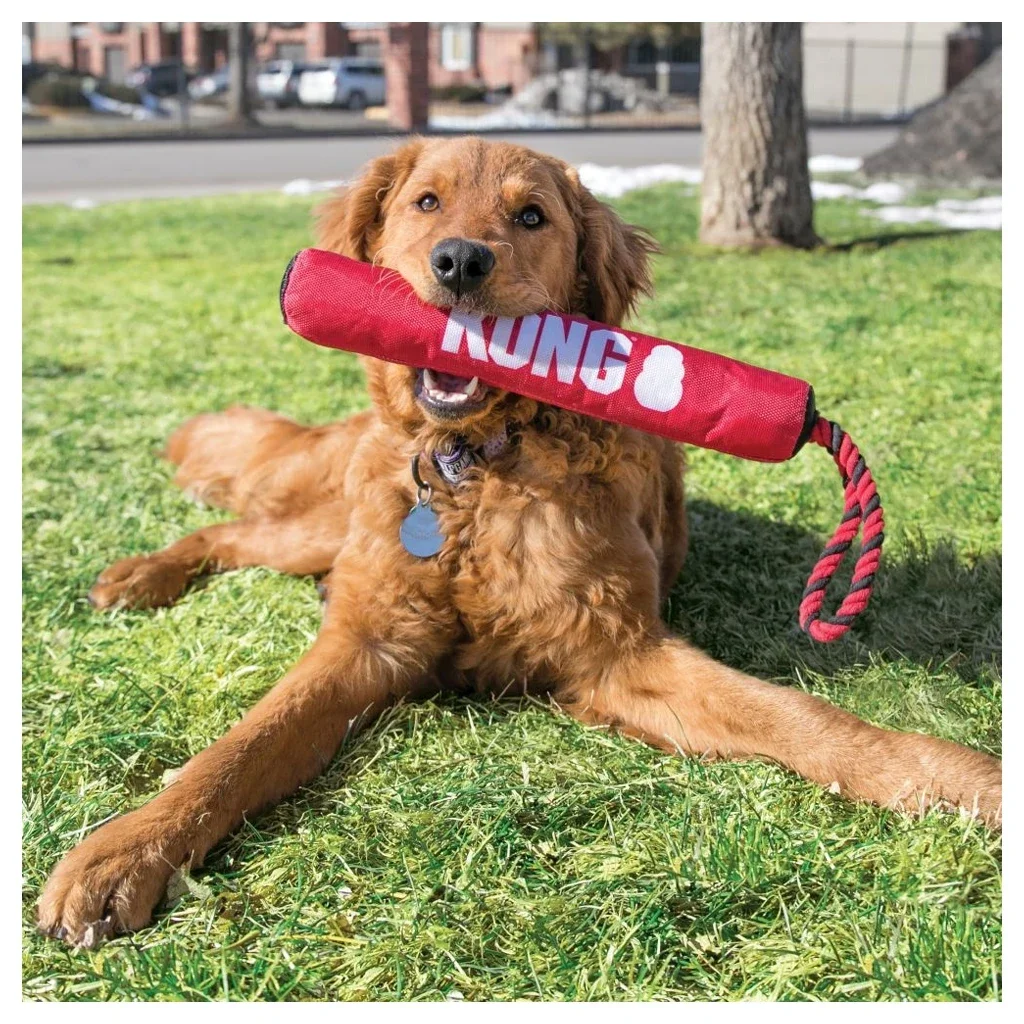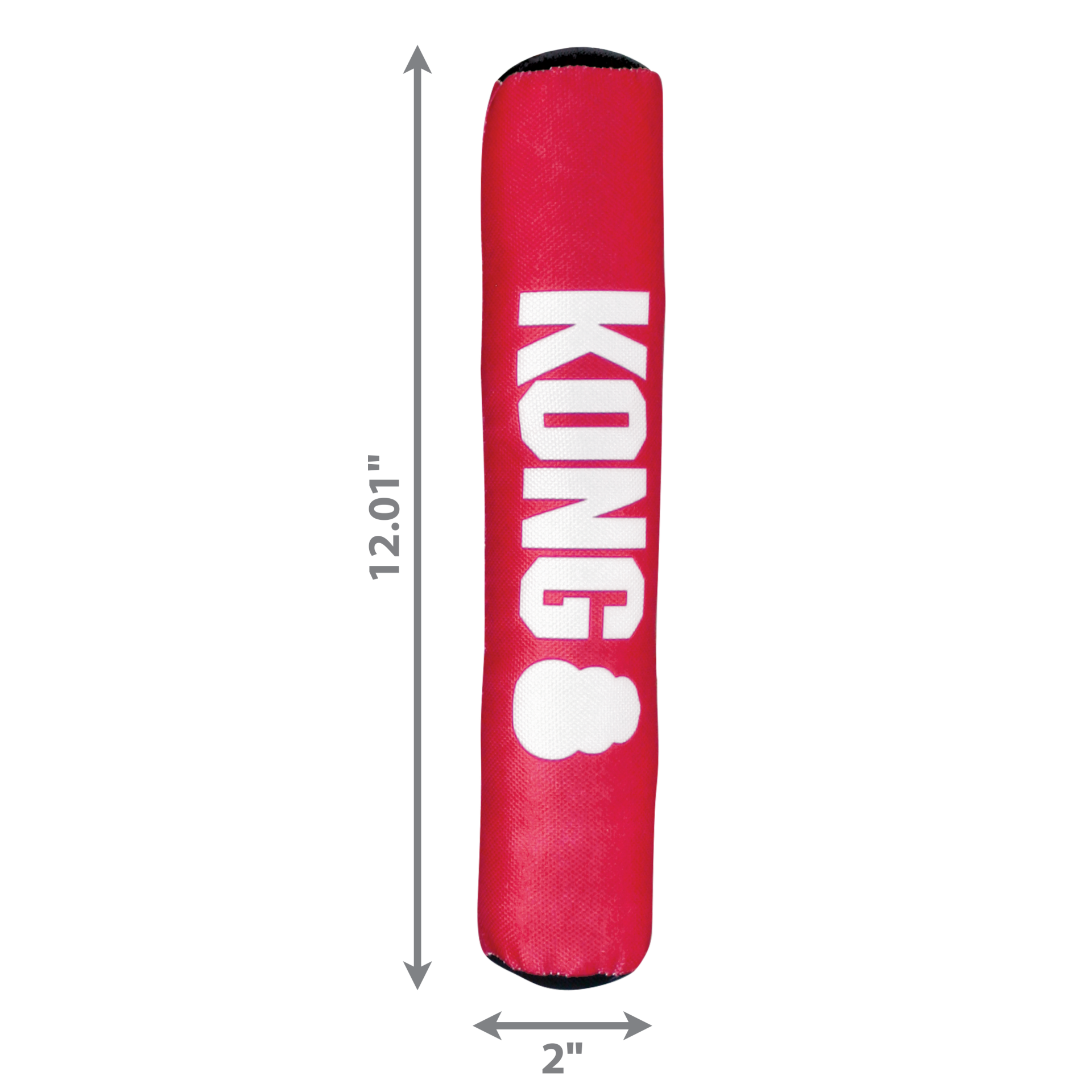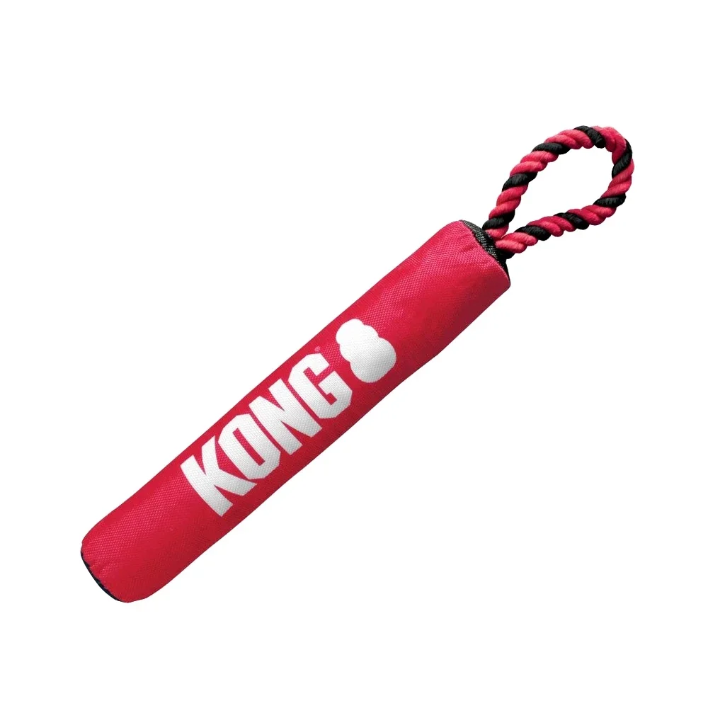 KONG Signature Stick's ruige buitenkant levert langdurige trek- en apporteerplezier om aan de instinctieve behoeften van honden te voldoen. Een symfonie van piepen, kreukelen en toeteren houdt de pups langer bezig terwijl het zacht gevulde lichaam mild is voor tanden en tandvlees. Katoenen touw maakt het grijpen gemakkelijk en helpt bij het schoonmaken van de tanden als honden kauwen.