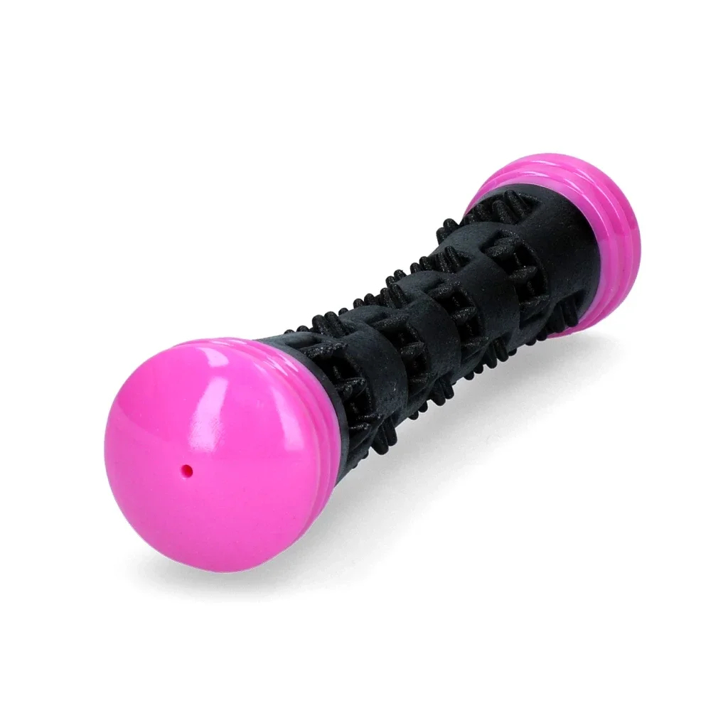 Deze werpstok is gemaakt van duurzaam rubber en stuitert perfect. Het materiaal van de werpstok masseert het tandvlees en ondersteunt de gezondheid van het gebit. De pieper maakt dit speelgoed af.