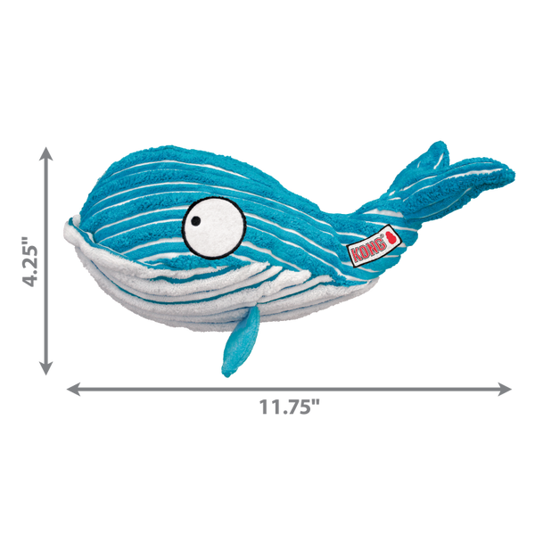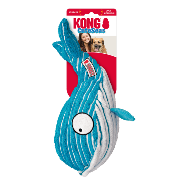 KONG CuteSeas zijn gemaakt van zacht corduroy om te knuffelen. Ze hebben ook een pieper en maken een kreukelgeluid tijdens het spelen.
