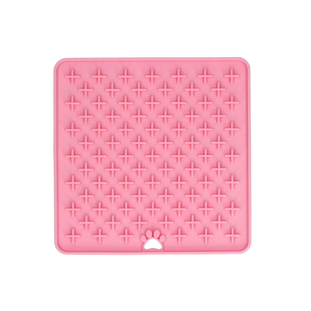 Deze likmat met een kruisjespatroon maakt het oplikken van al het lekkers extra uitdagend! De hond of kat zal goed zijn best moeten doen om alles in de hoekjes op te likken. Dankzij de zuignapjes aan de onderzijde kun je de likmat goed bevestigen aan een gladde ondergrond, zodat deze niet verschuift terwijl de hond of kat ermee bezig is.