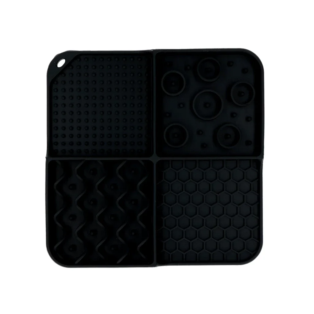 Deze vierkante likmat met 4 patronen (nopjes, rondjes, golven en honingraat) en diepe vakjes maakt het oplikken van al het lekkers extra uitdagend! De hond of kat zal goed zijn best moeten doen om alles tussen de nopjes en in de hoekjes op te likken. Dankzij de zuignapjes aan de onderzijde kun je de likmat goed bevestigen aan een gladde ondergrond, zodat deze niet verschuift terwijl de hond of kat ermee bezig is.