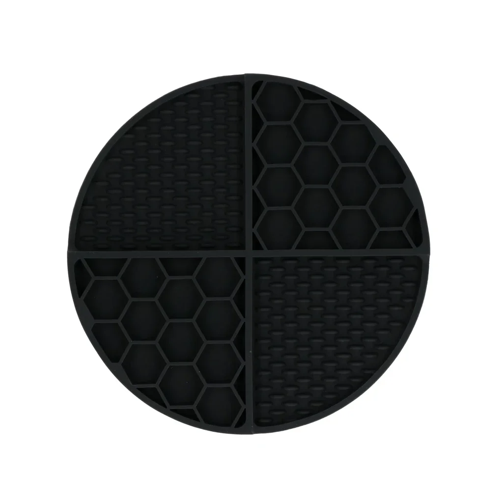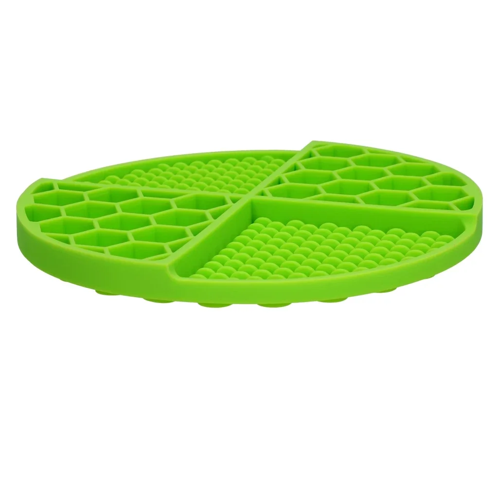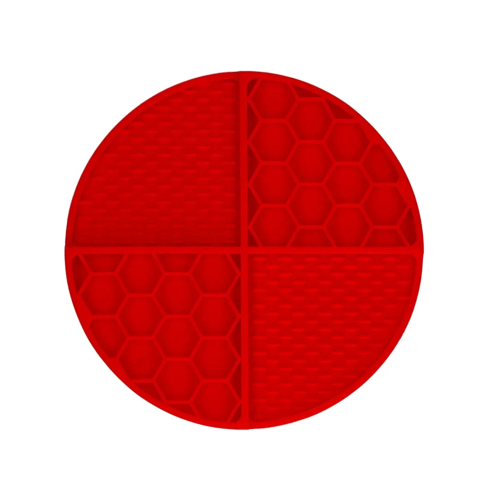 Deze ronde likmat met 2 patronen (nopjes en honingraat) en diepe vakjes maakt het oplikken van al het lekkers extra uitdagend! De hond of kat zal goed zijn best moeten doen om alles tussen de nopjes en in de hoekjes op te likken. Dankzij de zuignapjes aan de onderzijde kun je de likmat goed bevestigen aan een gladde ondergrond, zodat deze niet verschuift terwijl de hond of kat ermee bezig is.