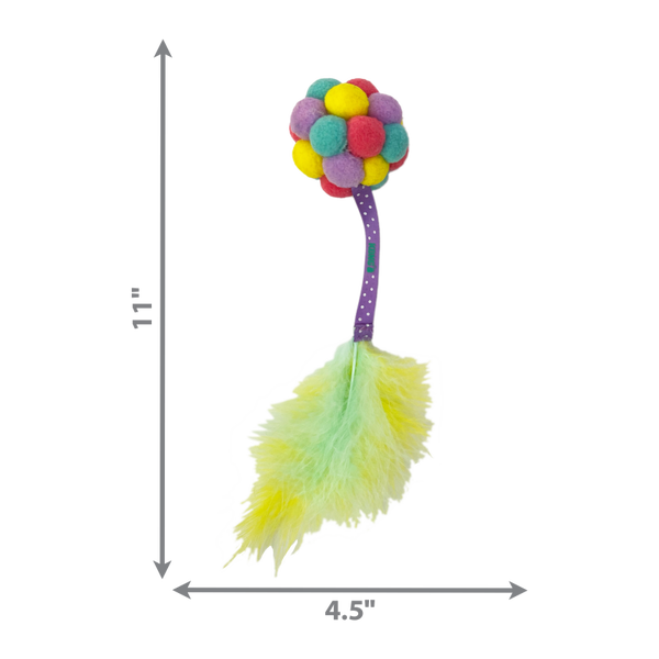 De multisensorische kenmerken van de KONG Active Bubble Ball verleiden katten tot het instinctief meppen en achtervolgen van de onweerstaanbaar rollende pompon. De fladderende staart met veren wakkert de jaaginstincten aan, terwijl het rinkelende belletje in de pompon ze aan het spelen houdt.