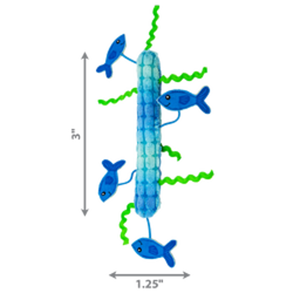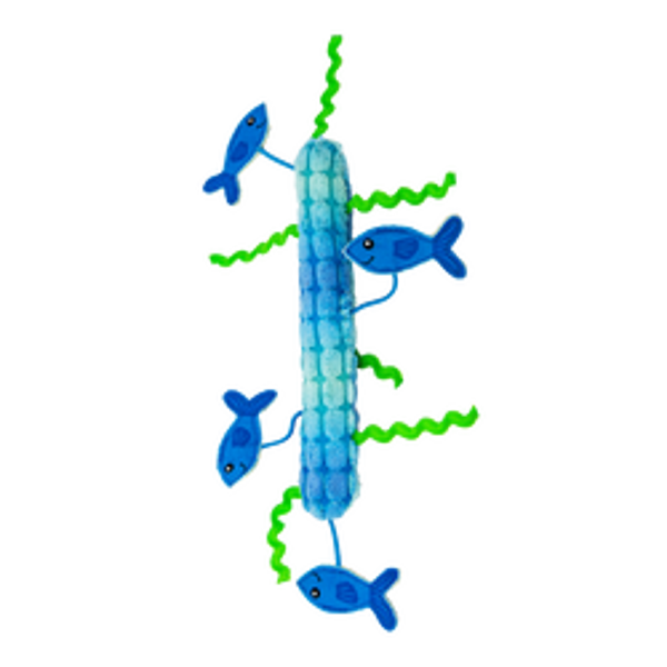KONG Kickeroo Stickaroo levert multisensorische verrijking in een lange, zachte vorm die gezond stoeien met het hele lichaam en schoppen met de achterpoten aanmoedigt. Kronkelend zeewier en een school opvallende glanzende vissen vastgebonden met elastiek nodigen uit tot dynamisch meppen en springen voor ‘onderwateravonturen’. Ze zijn ook geweldig voor het belonen van grijp- en vanginstincten. Knispergeluiden en KONG Premium North American Catnip door de hele stok zorgen voor natuurlijk, bevredigend plezier bij elke beweging.