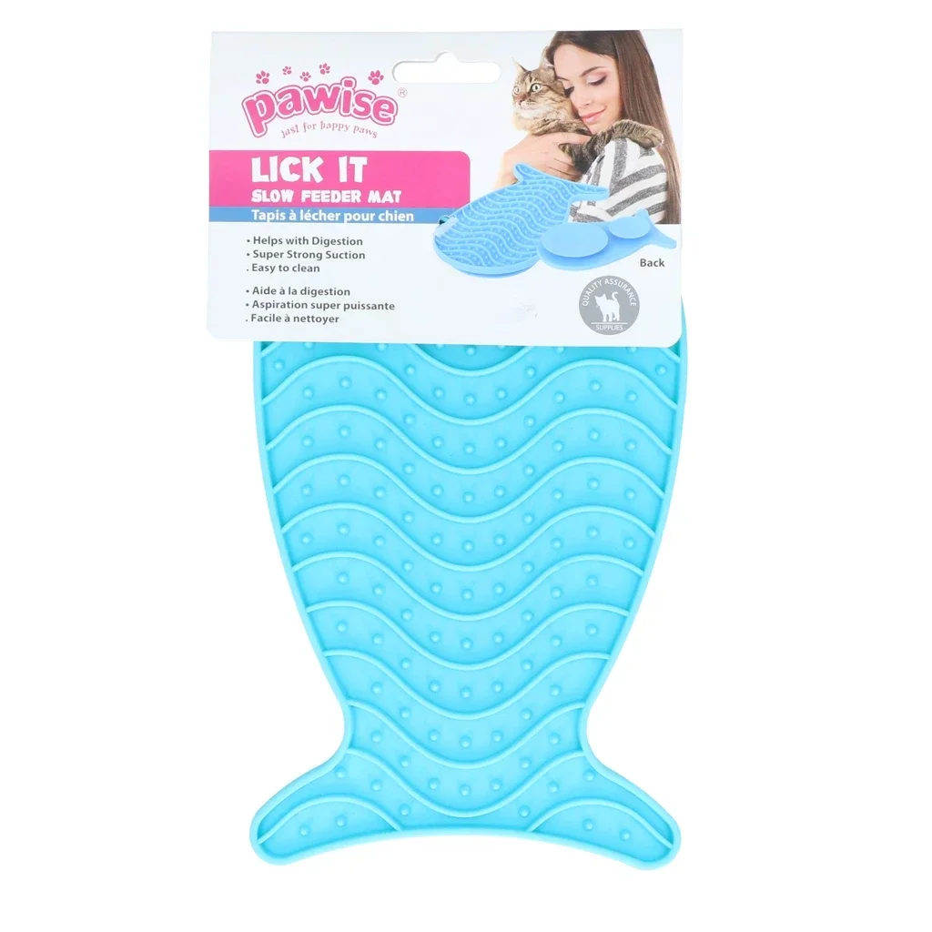 Deze Pawise lick it likmat in de vorm van een vis kan worden gevuld met voer, zodat je kat langer over zijn eten doet. De likmat is ook heel geschikt om de kat af te leiden tijdens bijvoorbeeld het baden of borstelen. Vul de mat met iets lekkers en plak het op een gladde ondergrond.