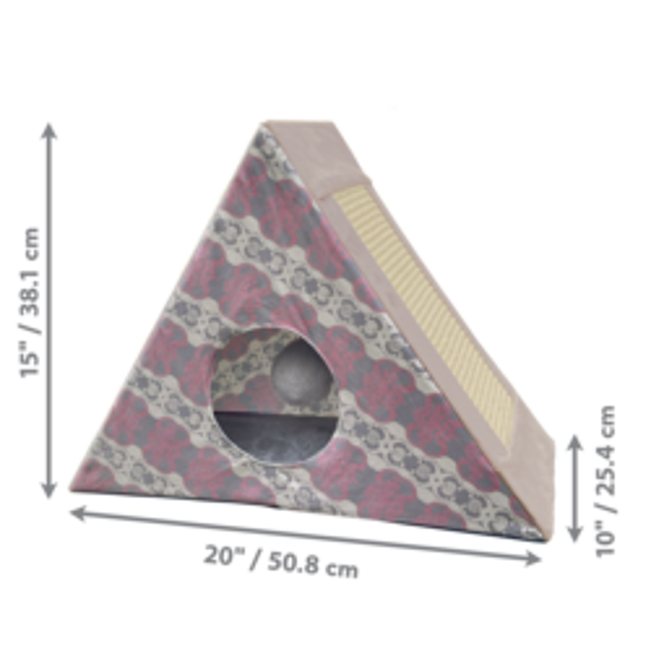 KONG Play Spaces Zen Den is een Bermudadriehoek vol verleidelijke, multi-zintuiglijke stimulerende opties waarin katten heerlijk verstoppertje kunnen spelen. Het grote krabvriendelijke oppervlak aan de buitenkant bevredigt de instincten, terwijl een pluchen, bungelende bal met bel aan de binnenkant uitnodigt tot meppen. Een superzacht poezenbed binnenin nodigt katjes uit om een dutje te doen tussen de gezonde, actieve spelletjes door.