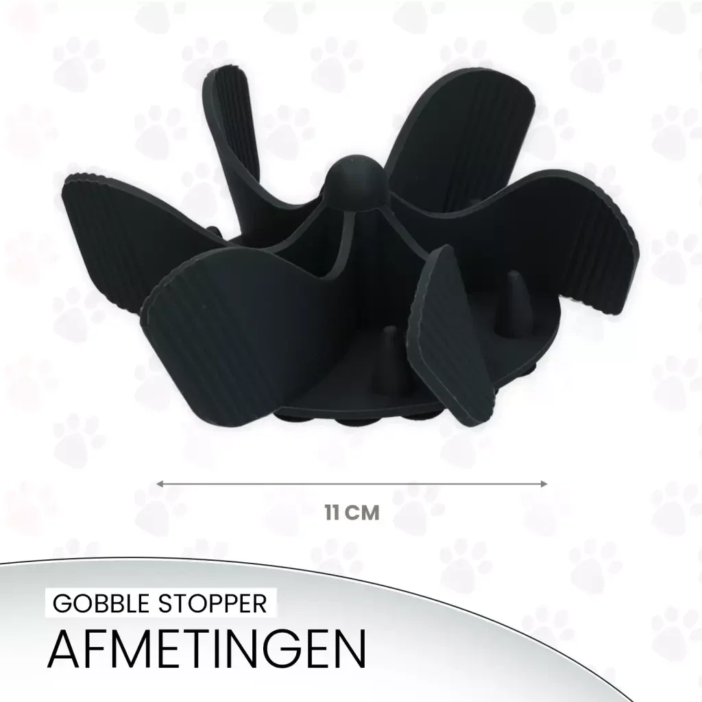 Deze Gobble Stopper is ideaal als de hond te snel eet. Dit spiraalvormige inzetstuk zorgt ervoor dat honden lastiger bij het voer kunnen komen, waardoor ze langzamer en minder gulzig eten. Het materiaal voelt stevig en toch zacht aan, waardoor het niet pijnlijk is voor de neus. De Gobble Stopper heeft zuignapjes aan de onderzijde, waardoor deze goed bevestigd kan worden aan de bodem van de voerbak.